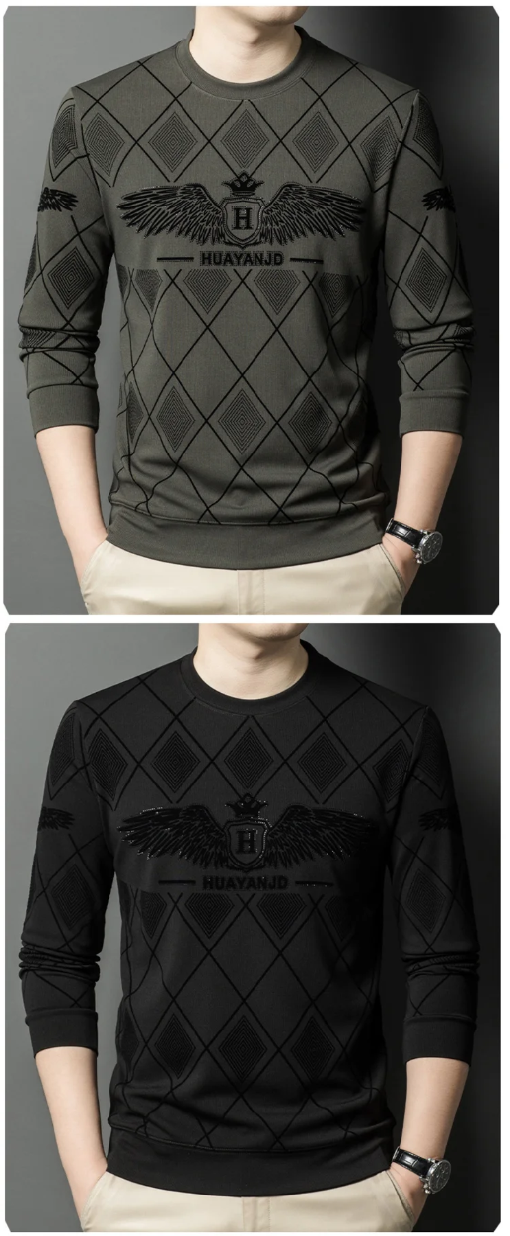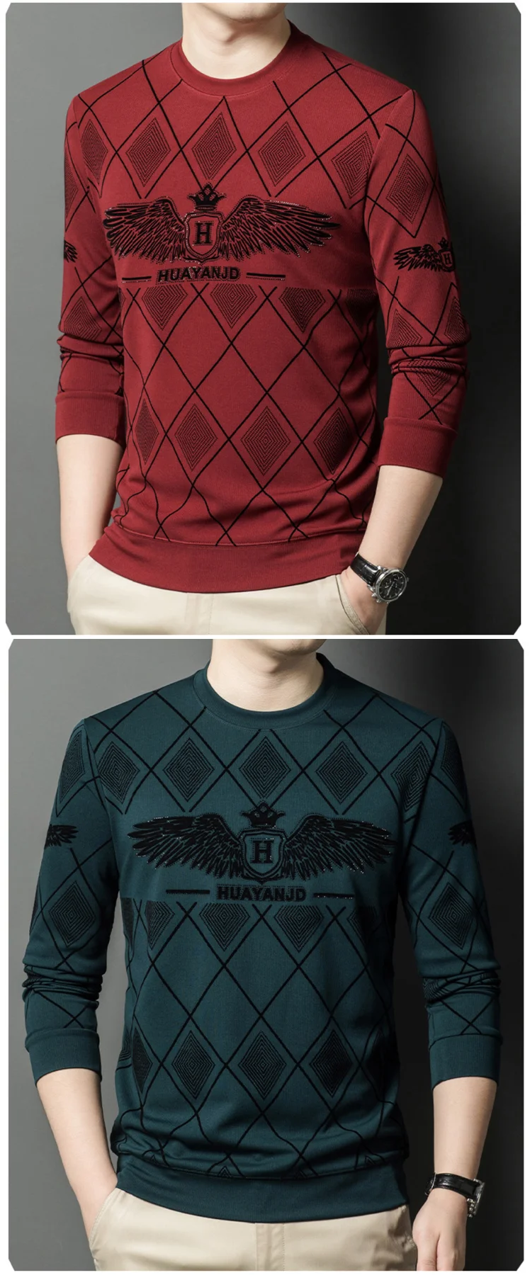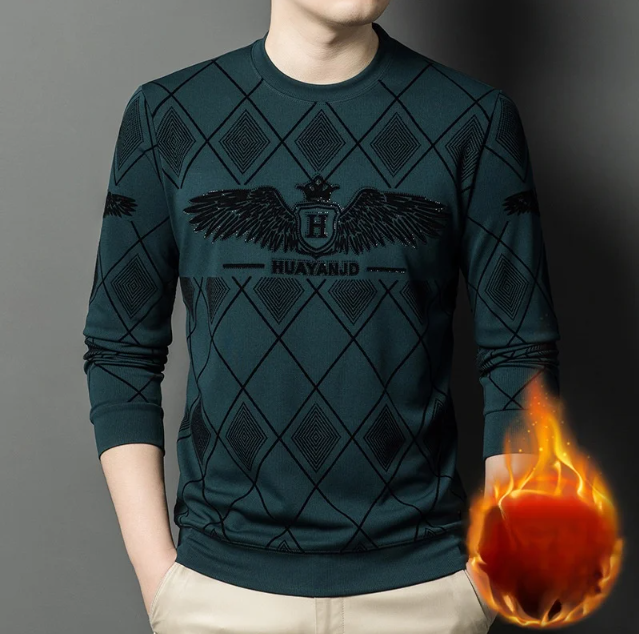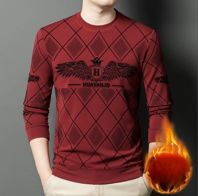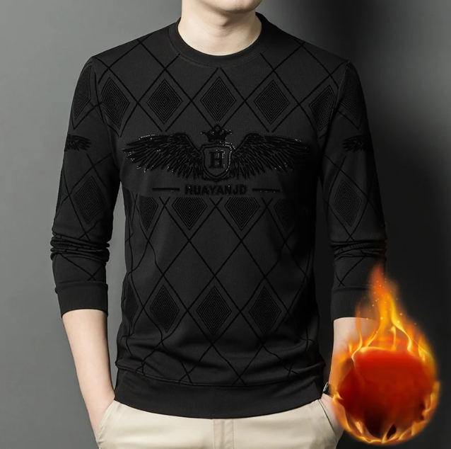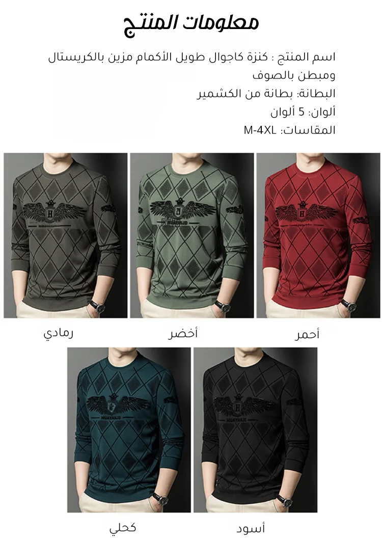MYF94 | كنزة كاجوال طويل الأكمام مزين بالكريستال ومبطن بالصوف