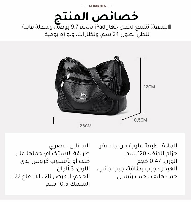 WB173 | حقيبة كتف جلدية راقية ذات جيوب متعددة